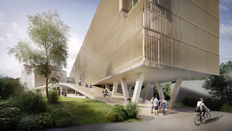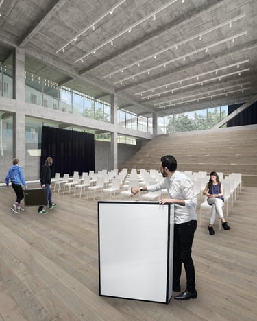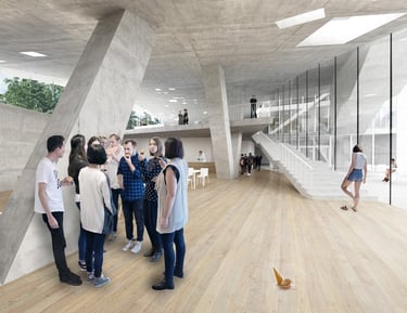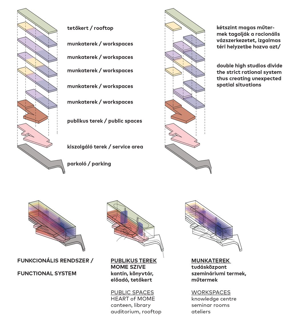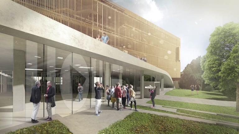 Moholy-Nagy University of Art and Design launched an international architectural competition in 2017 for the design of its new campus in Zugliget, Budapest. The aim of the competition was to create a contemporary, open and inspiring educational environment that actively supports creative learning and interdisciplinary collaboration. The brief challenged architects to rethink the traditional university campus as a flexible, community-driven space where education, experimentation and informal encounters could naturally intersect.